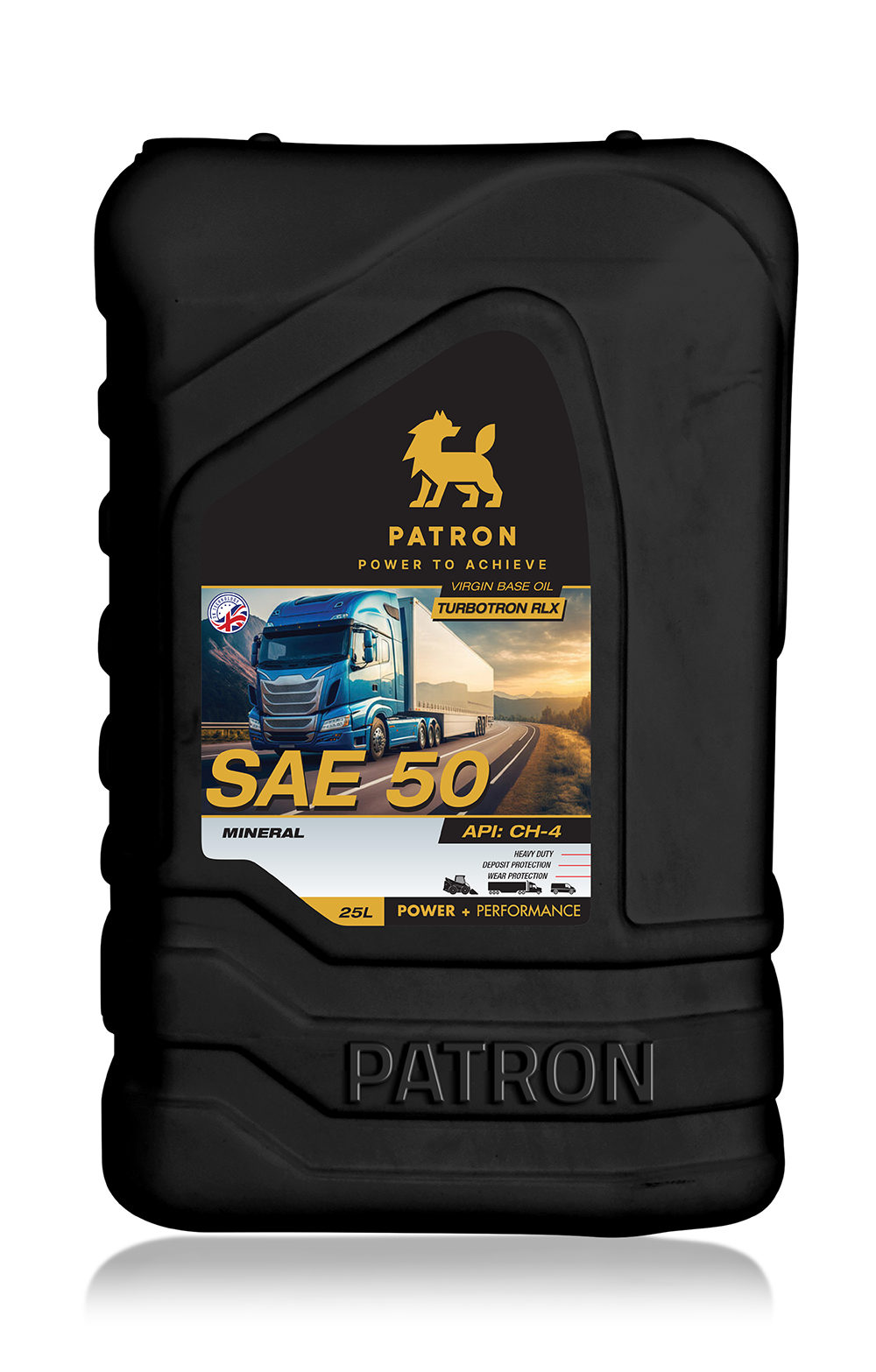 PATRON TURBOTRON RLX is a high-performance engine oil that provides proven protection to diesel engines operating in severe conditions for both on and Off-highway applications. This product has been blended with highest performance mineral base oils and fortified with an advanced additive system which assures superior control of oil thickening caused by soot buildup and high temperature oxidation.